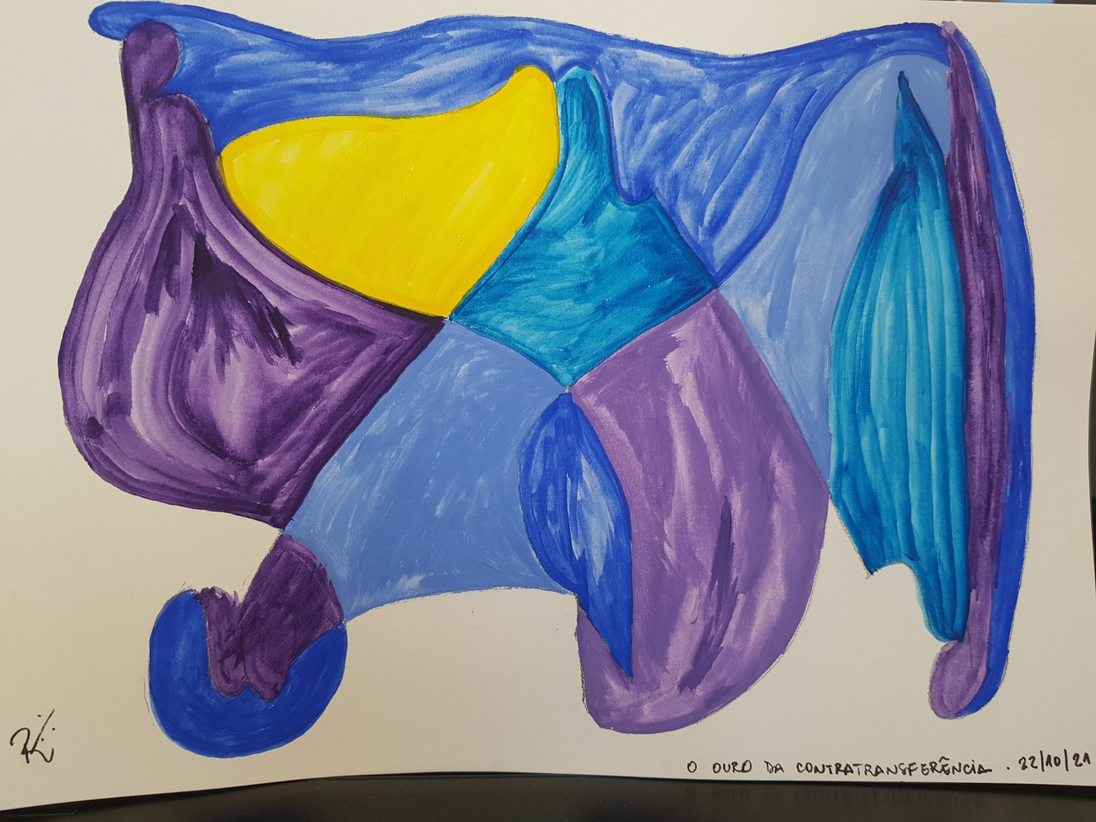 P.S.: Comecei a escrever esse post em 23/10/2021 e foi uma semana clinicamente intensa por aqui… Pintei essa aquarela inundada pelo tema da relação paciente-terapeuta, depois de dois encontros bastante intensos na formação… Chamei-a de “O Ouro da Contratransferência”.