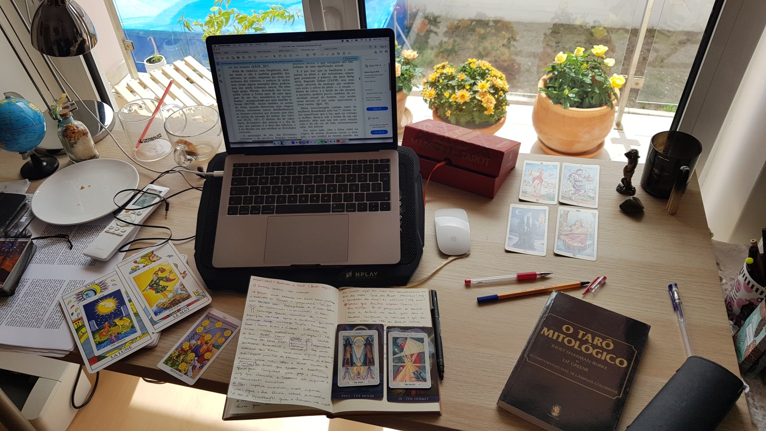 Olho para as tulipinhas no jarro na minha mesa como quem dá folga para o olhar em busca inspiração. Tem roupa branca secando no varal… A roseira vermelha — pombagira menina, o nome dela — tá ali renovando as folhas ao lado do crisântemo que começou a brotar e florir outra vez.